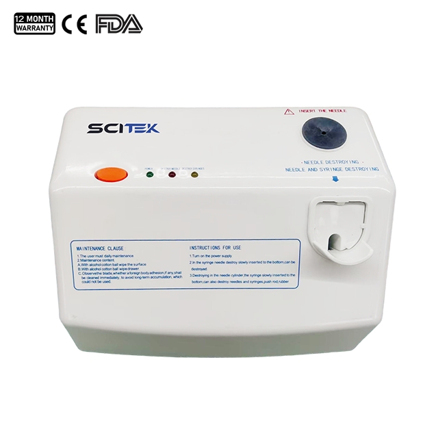 جهاز يذيب الإبرة على الفور ويقطع أنبوب الإبرة والمكبس والمكبس المطاطي ميكانيكيًا، مما يحقق الهدف